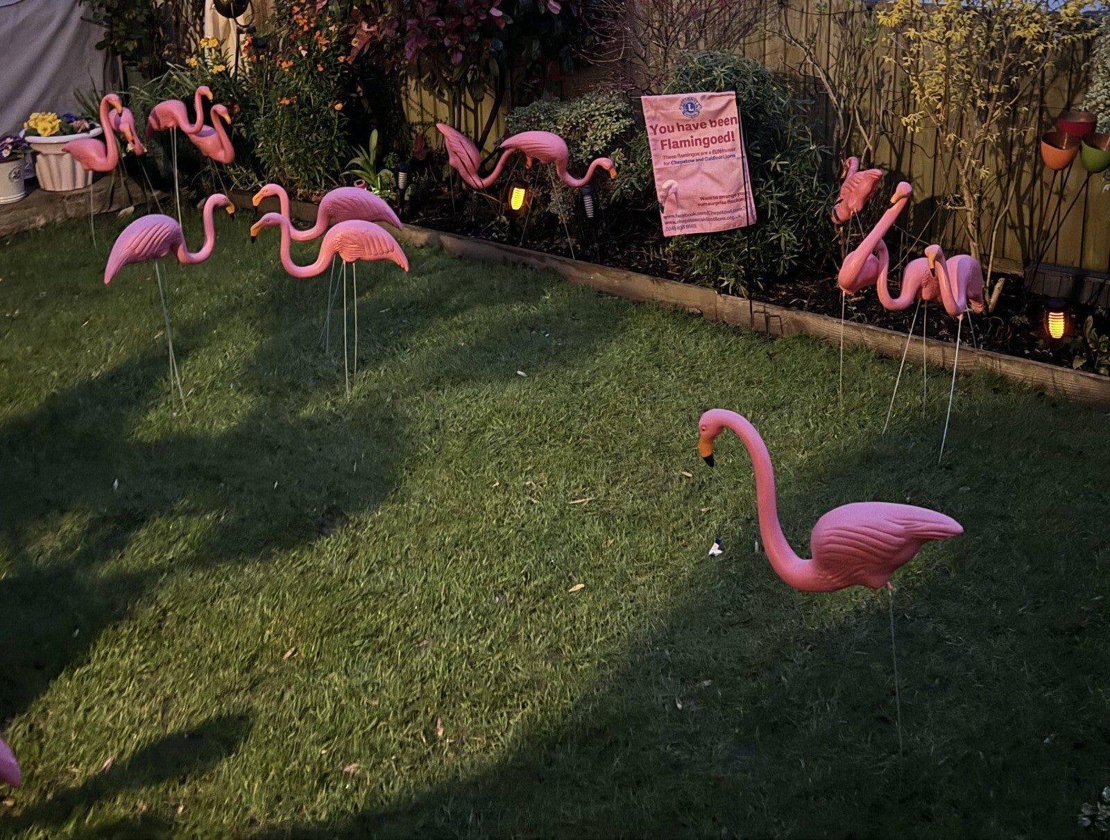 This is a FUNdraising program operated in the Chepstow, Caldicot and surrounding areas by the Chepstow and Caldicot Lions. You can arrange a surprise flamboyance of 30 Flamingos to flock to a friends garden to celebrate any occasion you wish. It might be their birthday, wedding anniversary, another special occasion or just to say thank you. Whatever it is for - it's a bit of fun. Imagine their surprise when they open the curtains in the morning and look out their window to see our flamingos.